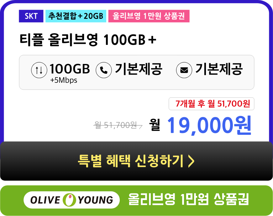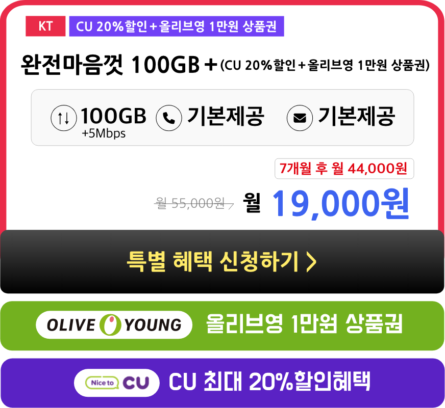 데이터 100MB 이상 사용하셔야