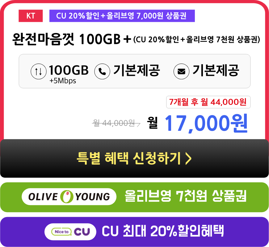 데이터 100MB 이상 사용하셔야
