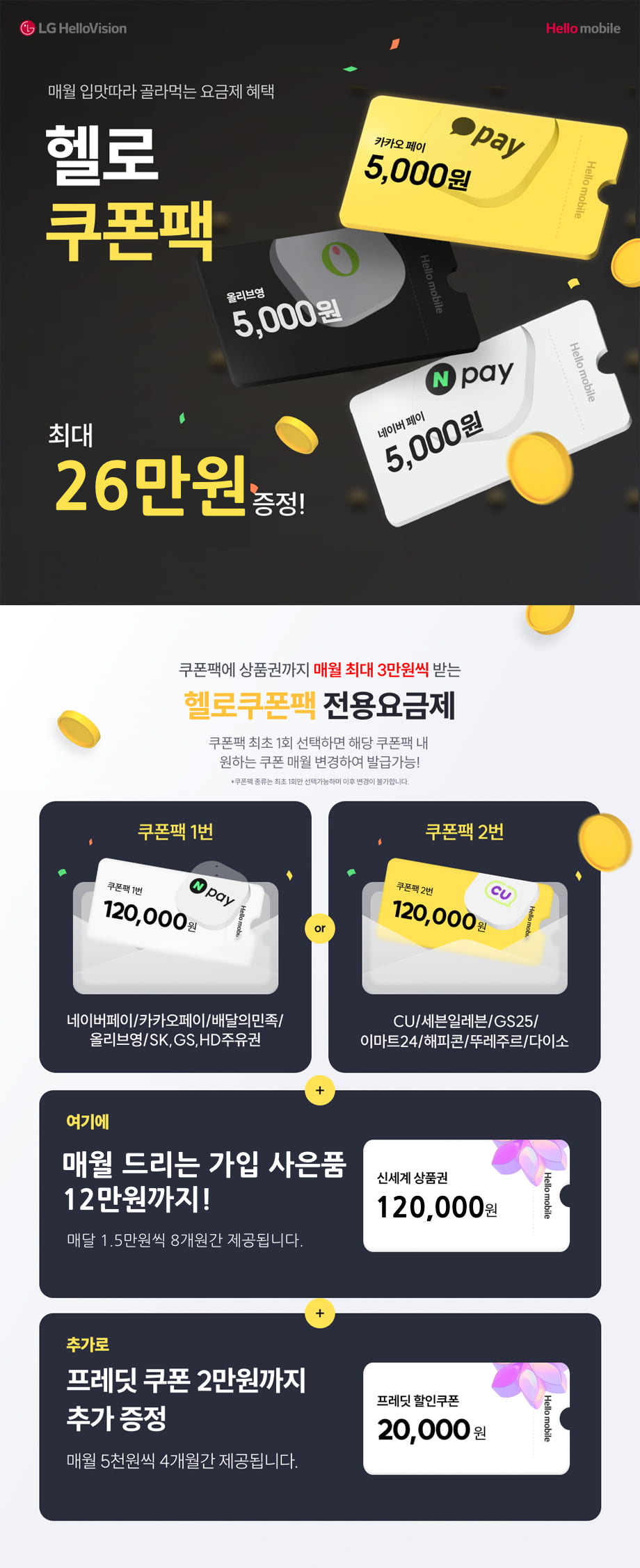 - 대상 요금제 가입시 쿠폰팩이 24개월간 5천원씩 지급됩니다.