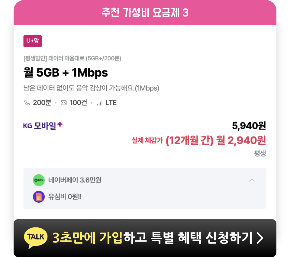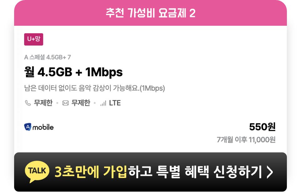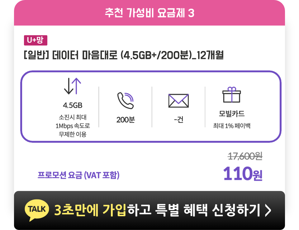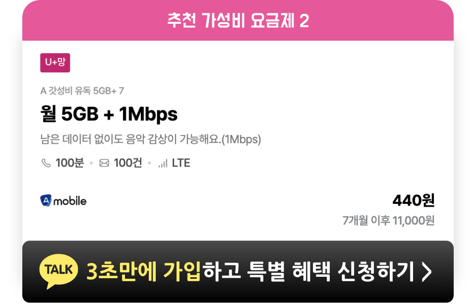 데이터 100MB 이상 사용하셔야