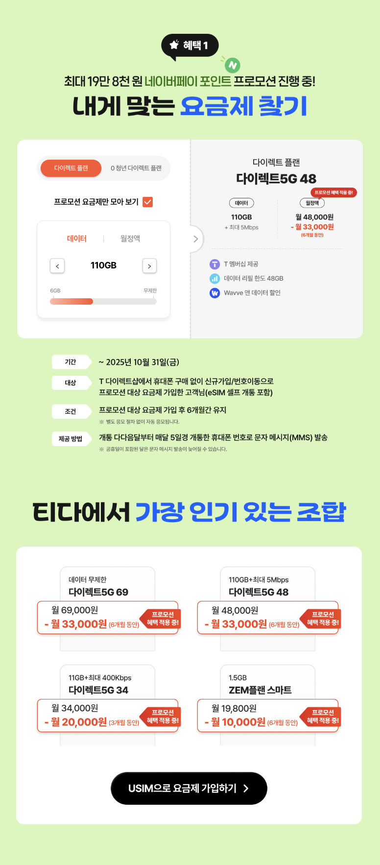 “혜택 받기 누르고 T다이렉트로